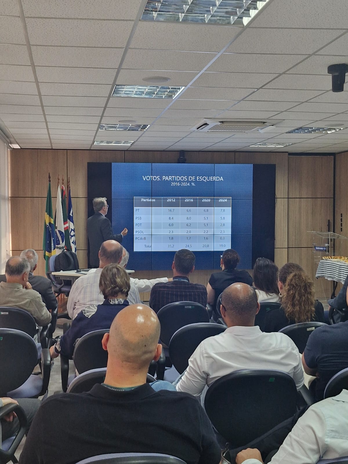 Na ocasião, Dias apresentou as perspectivas políticas para o Brasil com foco nas eleições presidenciais de 2026 e detalhou os impactos da economia no cenário político do próximo ano. O evento reuniu a cúpula da Instituição, incluindo diretores, assistentes de diretor e coordenadores.